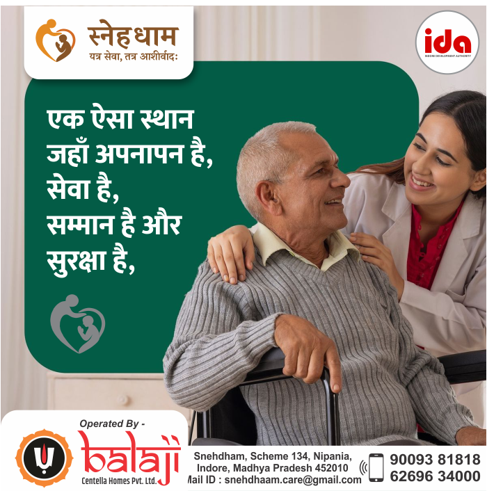 स्नेह धाम – वरिष्ठ नागरिक आवास परिसर, RC-11, स्कीम नंबर 134, स्टार स्क्वेयर के पास, इंदौर,